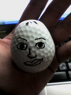 こんなコトなら普通のゴルフボールにペイントで書いておきゃよかったわ。